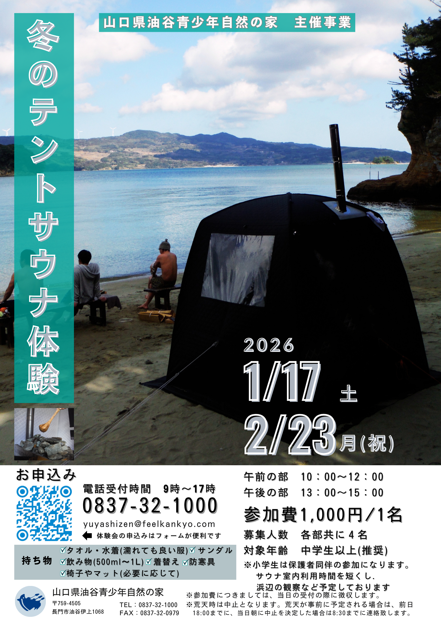 1/17、2/23【主催事業】2026冬のテントサウナ体験